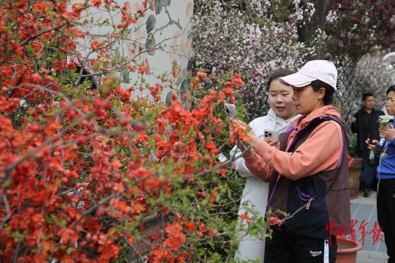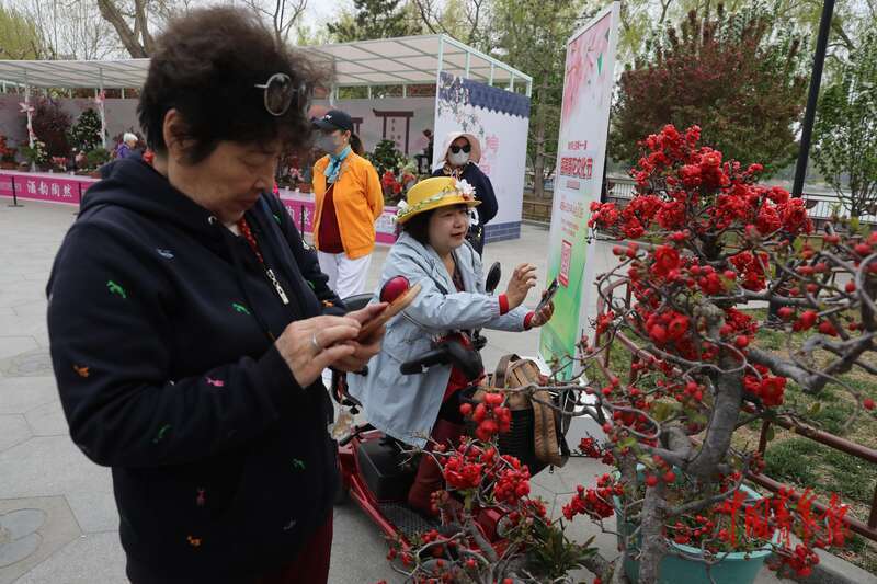 4月8日,北京市欣然亭公园,市民和旅客在欣然亭公园第十一届海棠春花文化节上不雅看各色海棠盆景。据了解,本届欣然亭海棠春花文化节以“春悦欣然 棠香满园”为主题,全园共展出20余种500余盆海棠宏构盆景,互助园内30余种3000余株地栽海棠,让旅客在一步一景中体验春日游园氛围。中青报·中青网记者 孔斯琪/摄