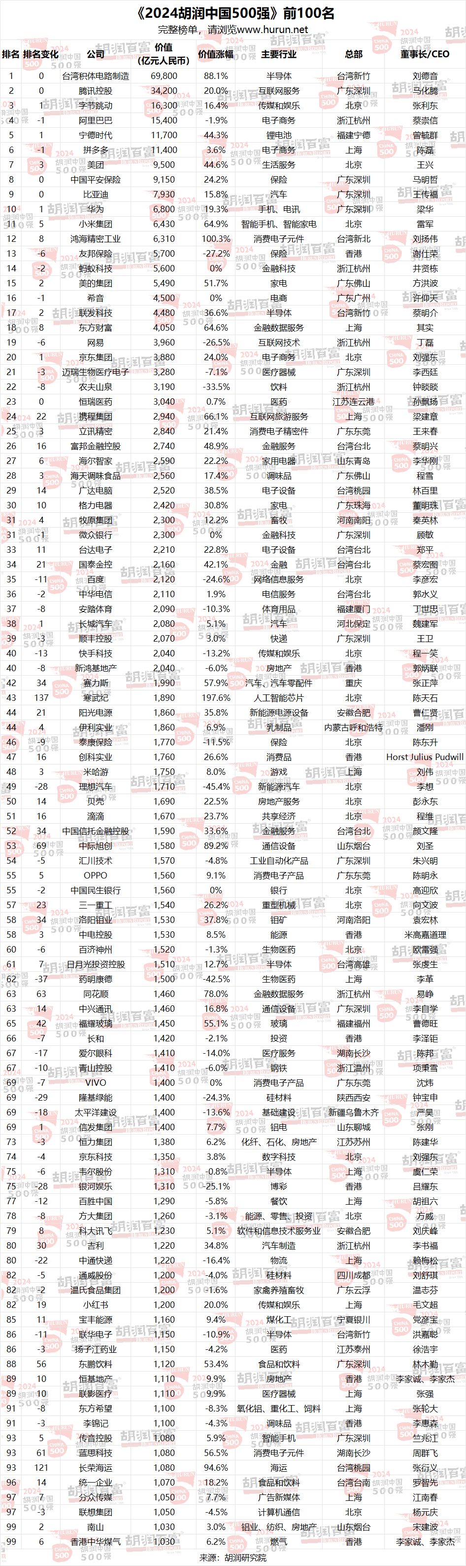 IT之家 2 月 25 日讯息,胡润参议院当天发布《2024 胡润中国 500 强》榜单凯发·k8国际app官网,列出了中国 500 强非国有企业,按照企业价值进行名次。