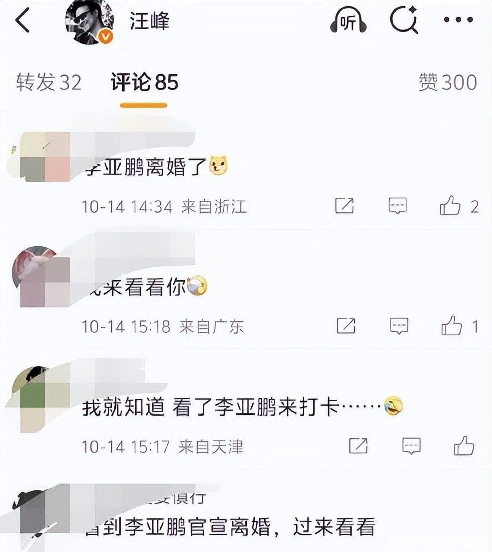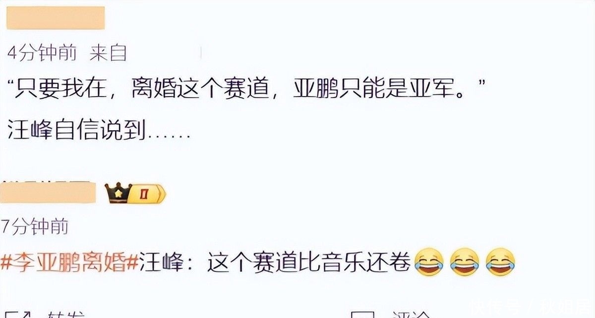 “仳离赛谈”比赢输:汪峰成了“天花板”当今看李亚鹏仳离的挑剔区,早没东谈主聊仳离自身了,全是网友在玩梗,笑点多到停不下来。