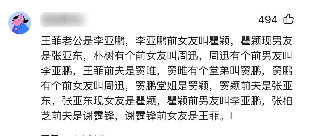 本合计众人的脑洞就此界限了,谁知谈又来了一位“天才”,径直从王菲和李亚鹏的联系运行捋,后果您猜奈何着?散伙竟然还是王菲!难谈地球是圆的,文娱圈亦然“圆”的?