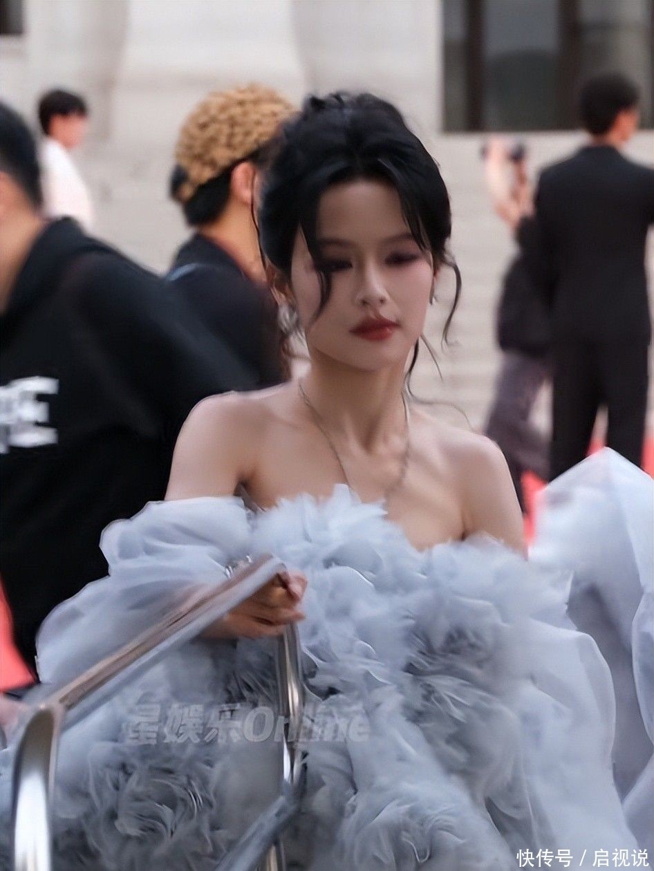 14. 高下楼梯时死后随着三四名使命主谈主员搀扶,阵仗堪比一线顶流出席外洋电影节。